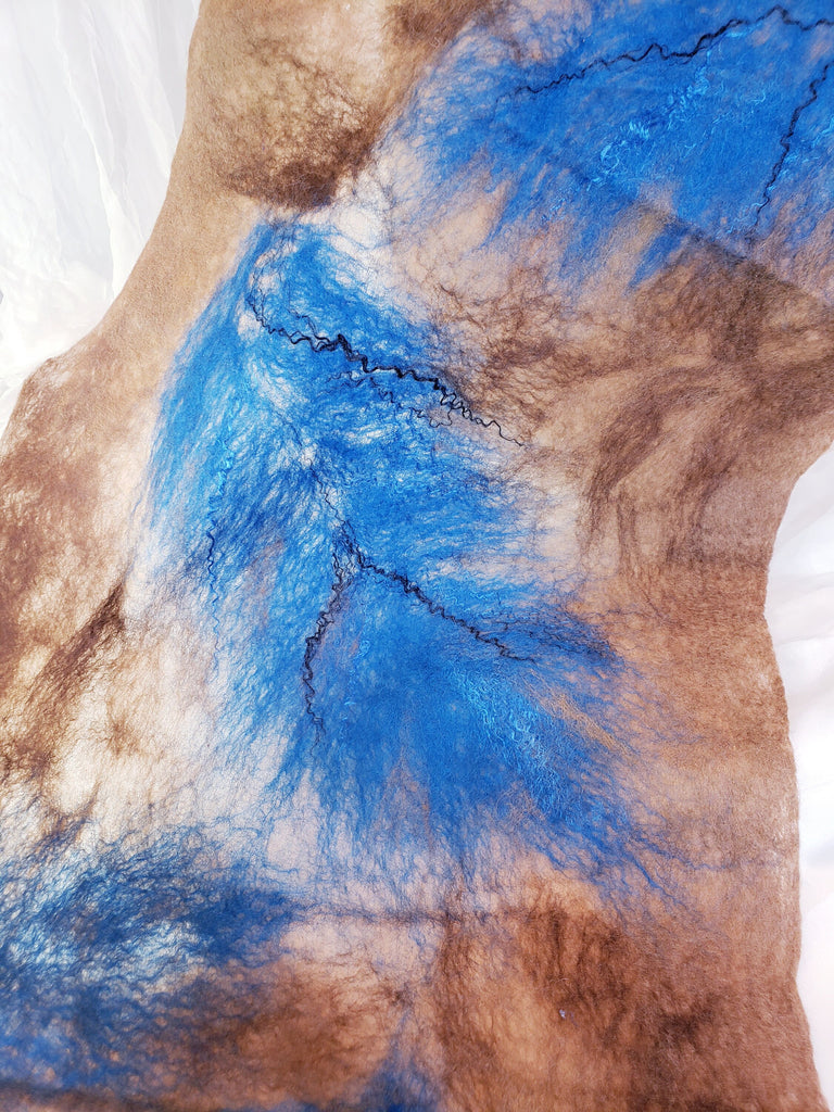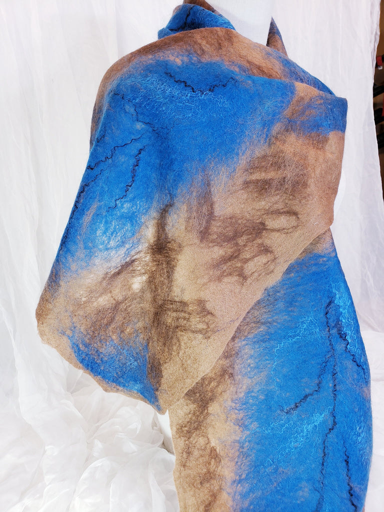 Scarf blue feather, soft, delicate, airy merino and silk, shawl wet felted, wear with brown jacket, blue dress, wearable gifts for ladies,