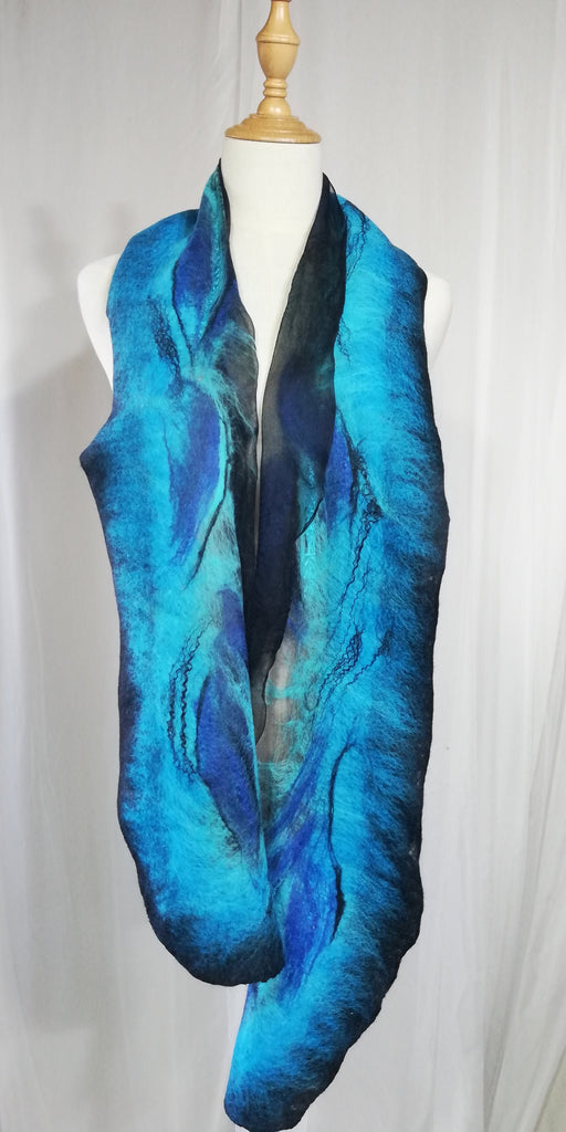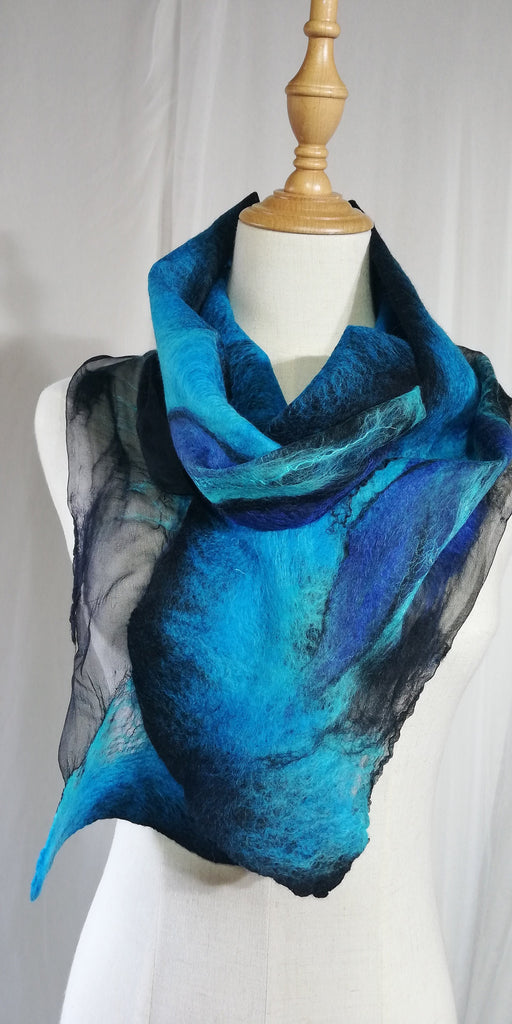 Nuno felted Scarf is warm and pleasant to the skin. The unique combination of the best silk and wool creates this wonderfully gentle velvet texture. The scarf is eco-friendly and versatile, gives a variety of choices on how to wear it - you may use it as an evening shawl with a dress or every day with a coat or shirt.