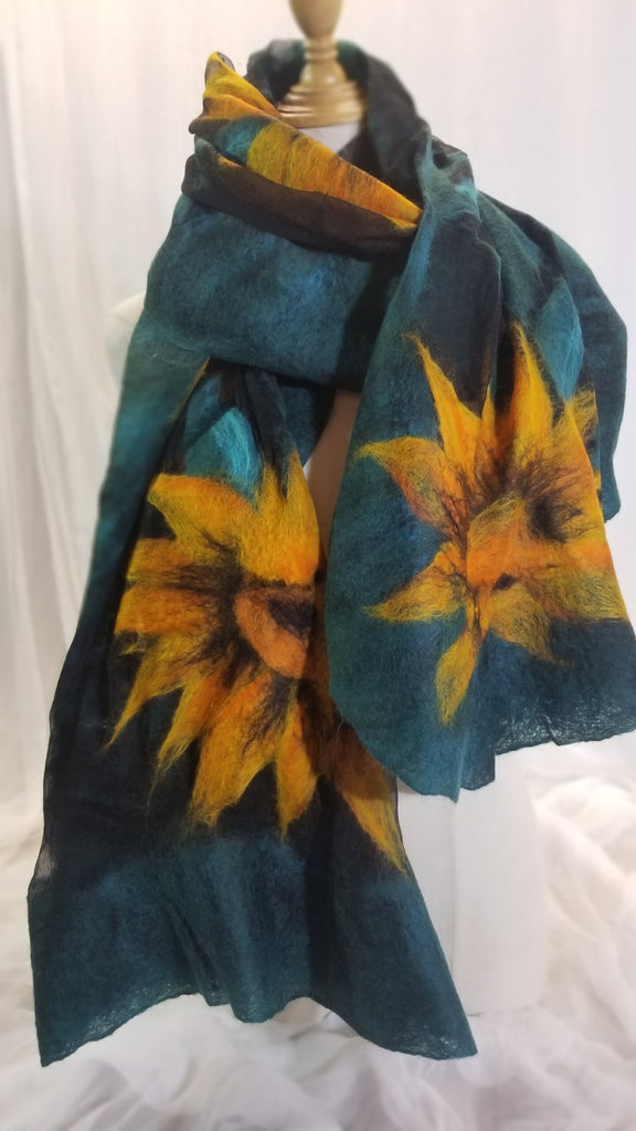 Sunflowers Nunofelting shawl The addition to the dress, coat. Fancy silk scarf for any occasion Unique design. Only one copy. Hand made silk