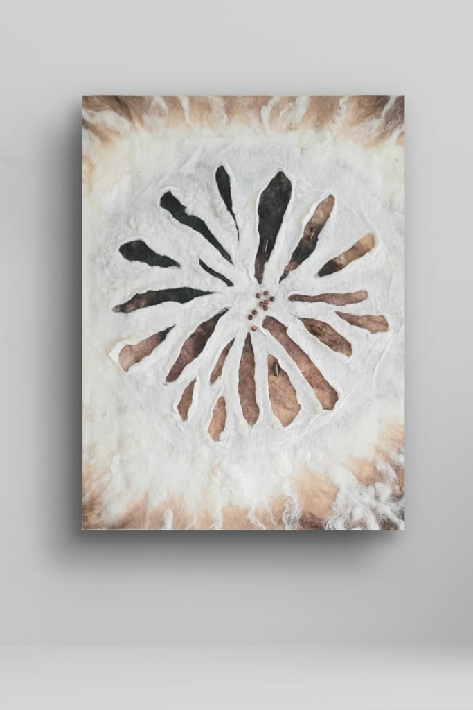 Seed of Light, wall texture art merino wool 51 x 40 cm
