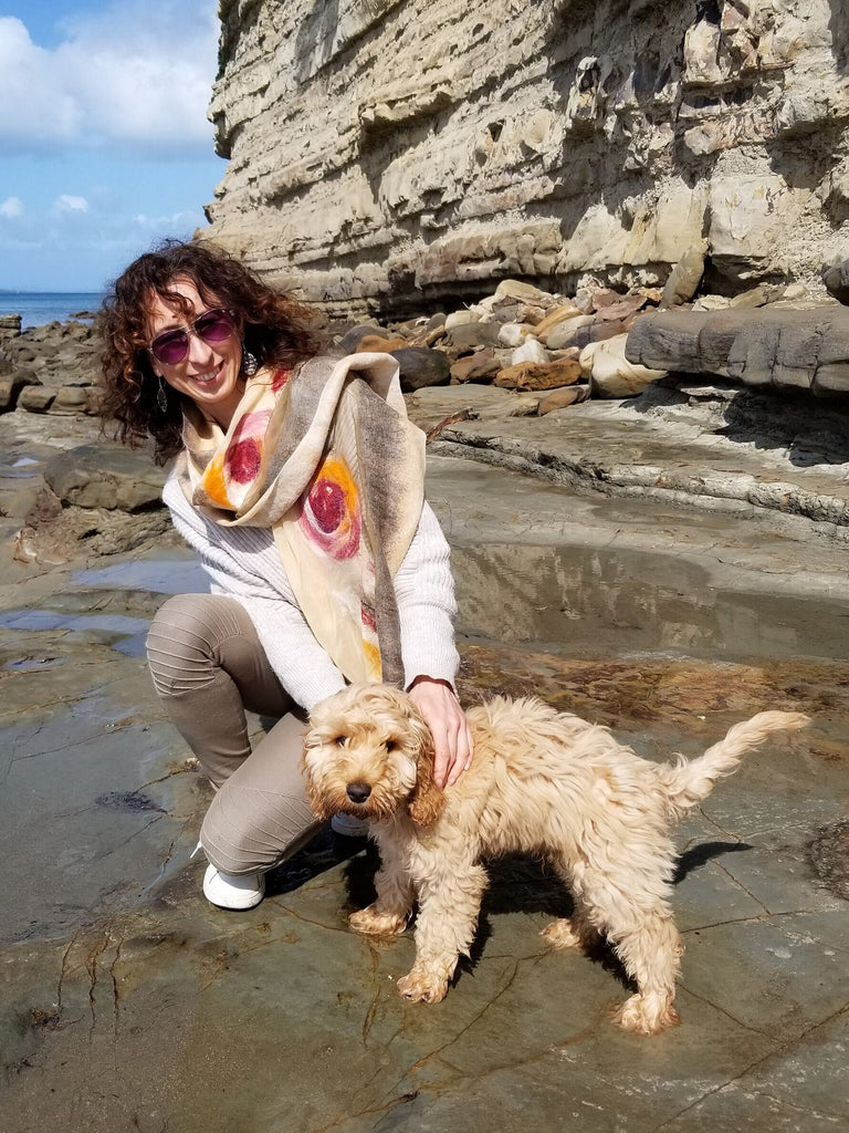 My name is Agnieszka Arciszewska, my workshop is located in New Zealand, where I live currently. I come from Poland and that's where I started my adventure with creativity. I have been designing and creating for over 15 years. I use the thinnest merino wool and the highest quality natural silk, sometimes I reach for linen, cotton, or driftwood the pieces of wood which have been washed ashore, everything that is natural and eco.