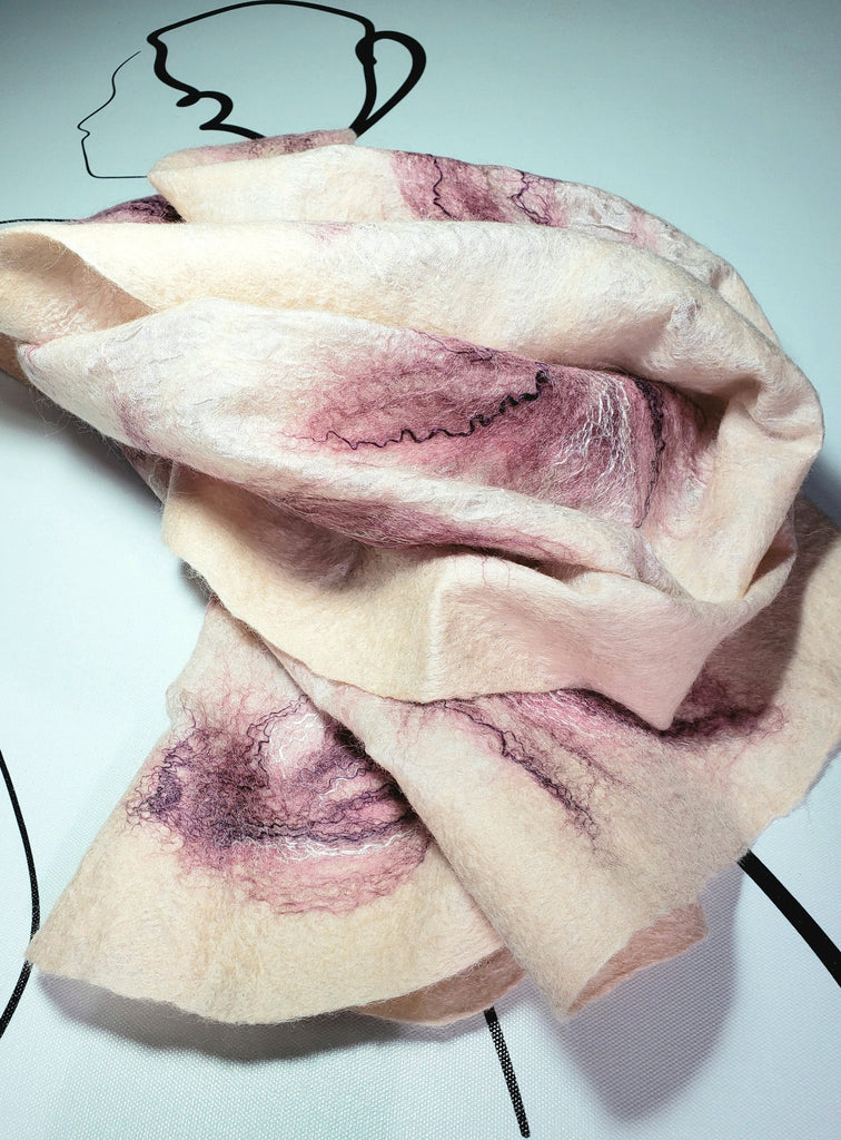 Nuno felted Scarf is warm and pleasant to the skin. The unique combination of the best silk and wool creates this wonderfully gentle velvet texture. The scarf is eco-friendly and versatile, and gives a variety of choices on how to wear it - you may use it as an evening shawl with a dress or every day with a coat or shirt.