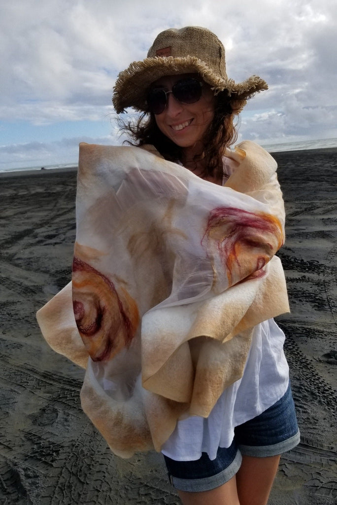 Unique bridesmaid shawl, handmade in New Zealand nuno felted silk scarf for evening, wedding wrap.